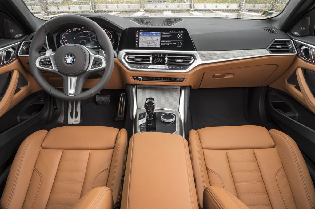 En plus, dès que l’on s’installe dans les sièges en cuir siglés M de cette BMW coupé M440i, on l’oublie vite fait le haricot. Car on n’y est mieux que bien : on se coule dans l’habitacle où la position de conduite est idéale et où toutes les commandes tombent sous la main, avec une débauche d’aluminium qui vient rappeler que les quelque 70 000 euros exigées pour l’auto (quelques indispensables options comprises), ne vont pas entièrement la marge confortable du constructeur.