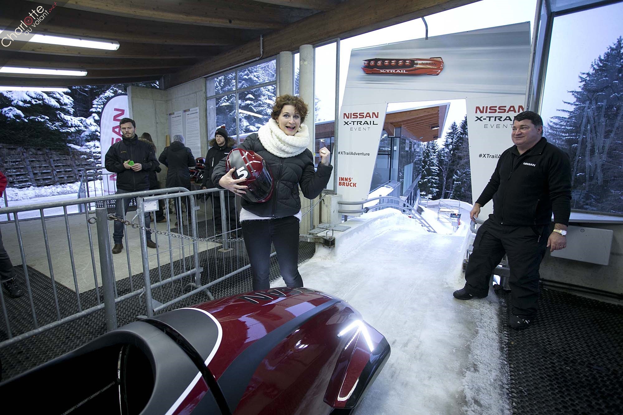 Je ne me trouve pas dans le SUV du constructeur japonais mais dans le tout premier bobsleigh sept places au monde. Nettement plus tape cul que le crossover puisque nous sommes assis à même le sol, cette luge sophistiquée pilotée par le champion olympique Sean Olsson donne de sacrées sensations et forge les abdos. Comme lorsqu’on pilote sur un circuit automobile, il faut regarder au loin, anticiper les virages et affronter les G.