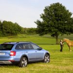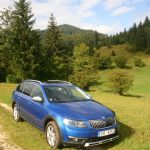 La version Scout transforme le break en couteau tchèque. Esthétiquement, elle reçoit des modifications pour renforcer son petit look de baroudeuse. Et pour affronter tous les revêtements, on l’a surélevée (garde au sol de 17cm) et on l’a équipée d’une transmission intégrale Haldex de dernière génération. La Scout peut donc sortir des sentiers battus comme j’ai pu le voir sur les chemins caillouteux des hauteurs de Bled. Mais attention. Inutile d’aller sur des zones de trial car elle ne possède pas d’aide à la descente ni de 1er rapport raccourci.