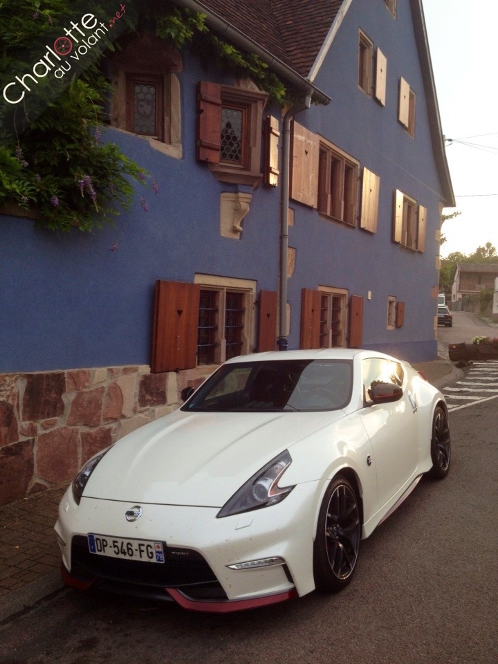 Un plaisir auquel j’ai succombé. Car lorsque le V6 se fait entendre, lorsque l’on a réussit à passer la première, on franchit la porte du délicieux enfer. Le 370Z hurle jusqu’à 7400 t/min, avant de passer au rapport suivant dans une déflagration de petits bruits mécaniques. Calée dans mon Recaro, le maître d’oeuvre de ce vacarme égrène les 6 rapports, enchaîne les courbes, place ses roues grâce à une direction au poil et arrête la bête d’un simple appui sur les freins sans faille. Radical donc. Mais pas tant que ça. Vu le peu de civilité de l’auto, j’attendais un châssis virevoltant et joueur. Le train arrière reste parfaitement en ligne, comme un sage élève japonais. Dommage et en même temps rassurant. Même pour Charlotteauvolant qui a pourtant usé les pires pompes à feu du vieux continent. Du plaisir sans trop de risques. Une vraie sportive pour (presque) toutes et tous. C’est le credo de cette Nismo qui, aux alentours de 50 000 euros, en donne beaucoup pour beaucoup moins que tous ces concurrents.