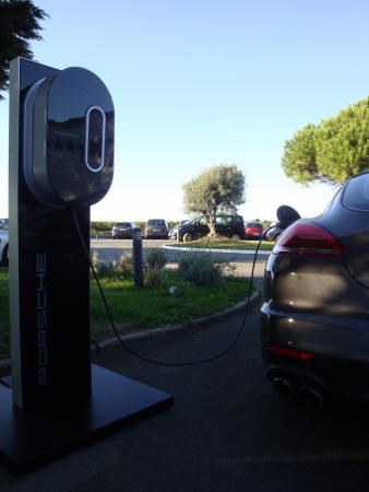 – en utilisant une borne de rechargement (dessinée par Porsche Design et incluse dans le prix de la voiture) à installer dans votre garage (un dispositif portatif est également disponible). Le temps de chargement est compris entre 2:30 et 4 heures selon le type de prise dont vous disposez.