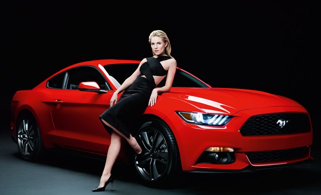 Encore une blonde qui s’appuie langoureusement sur le capot d »une Supercar. Lassant ? Jamais ! Le mannequin s’appelle Sienna Muller et apporte sa touche artistique à cette magnifique nouvelle Ford Mustang. Franchement, je ne connaissais pas Sienna Muller (même pas de nom). Mais il faut avouer que la dame est fort belle et que la Mustang est « Ford » attirante 🙂