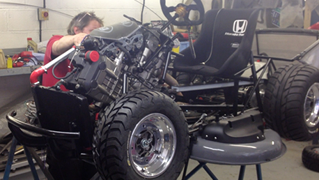 Il faut avant tout savoir que les anglais sont très friands des voitures propulsées par des moteurs de moto. Le constructeur Radical en est le parfait exemple. Mais certains préparateurs mettent la main à la pâte et transforment complètement une voiture pour la faire renaître avec une âme nouvelle, comme cette Suzuki Cappuccino armée d’un moteur de Suzuki 1300 GSX-R Hayabusa, plus connue sous le sobriquet de « Hayabusa« . Le choix de Team Dynamics s’est finalement porté sur une Honda VTR1000.